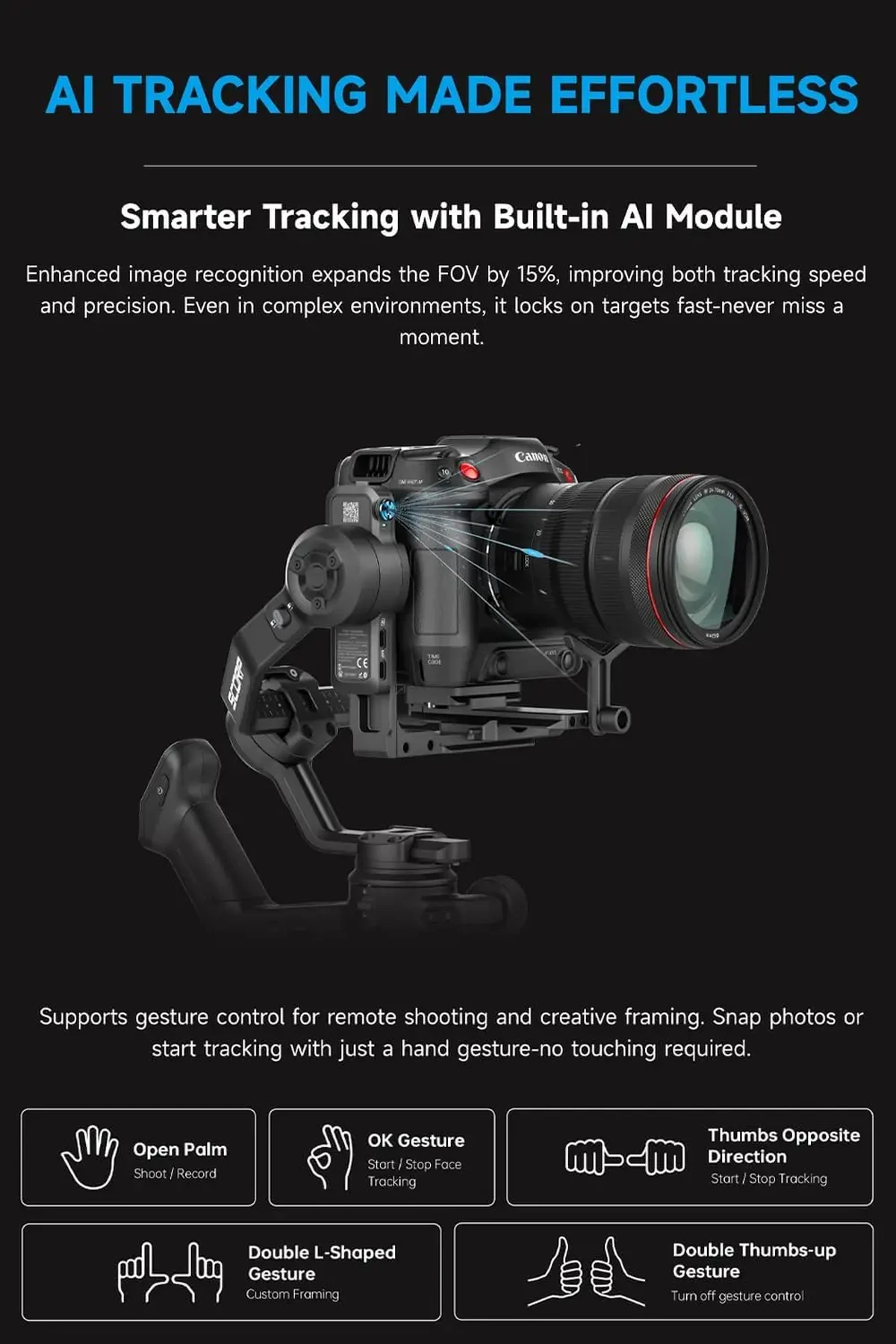 The integrated AI tracking module enables automatic subject tracking without additional accessories.