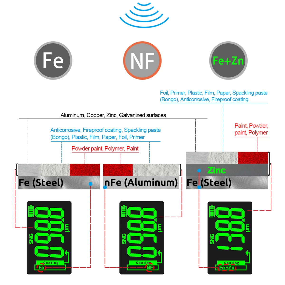 R&D ET330+Zn Automotive Paint Coating Thickness Gauge Zinc Electroplating Metal Tester